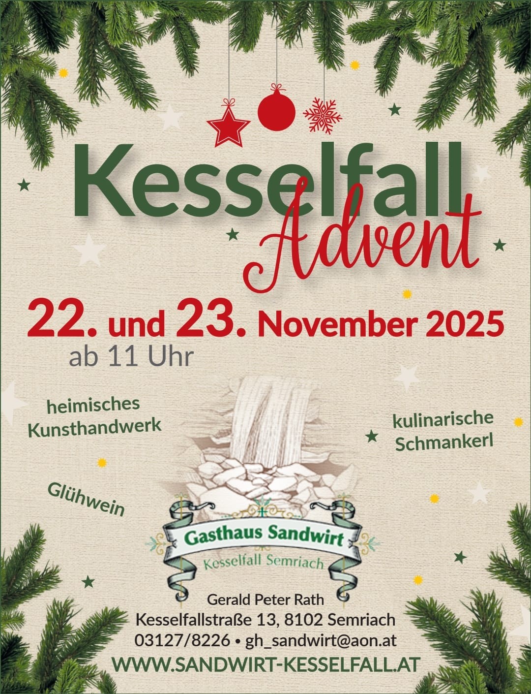 22.11.2025 - 23.11.2025 | ab 11:00Uhr | Gasthaus Sandwirt Kesselfallstraße 13, 8102 Semriach