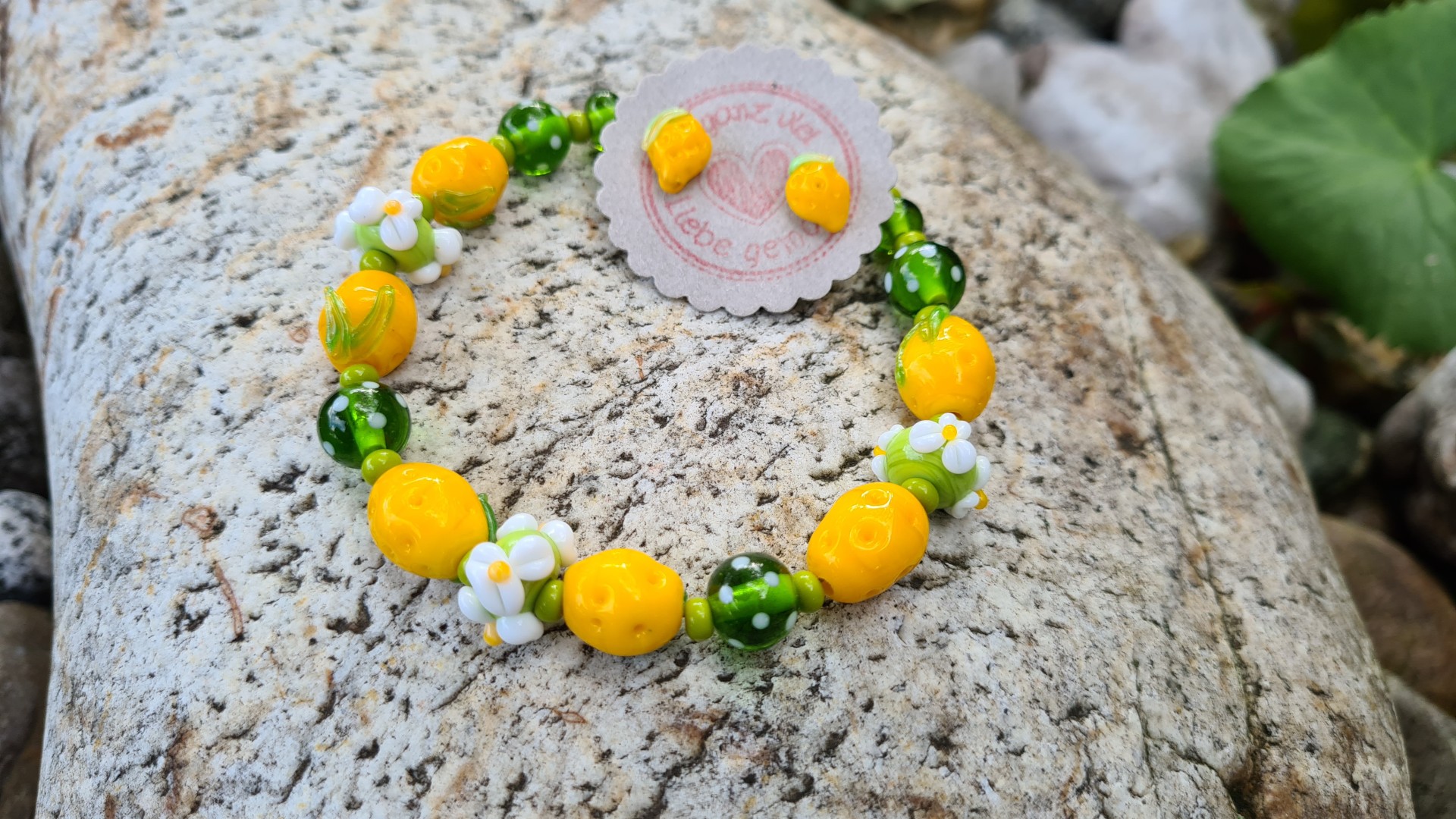 Wunderschönes Armband aus Glasperlen im Zitronen-Design.