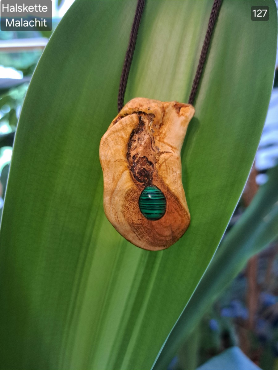 Baumperlen Halskette mit Malachit