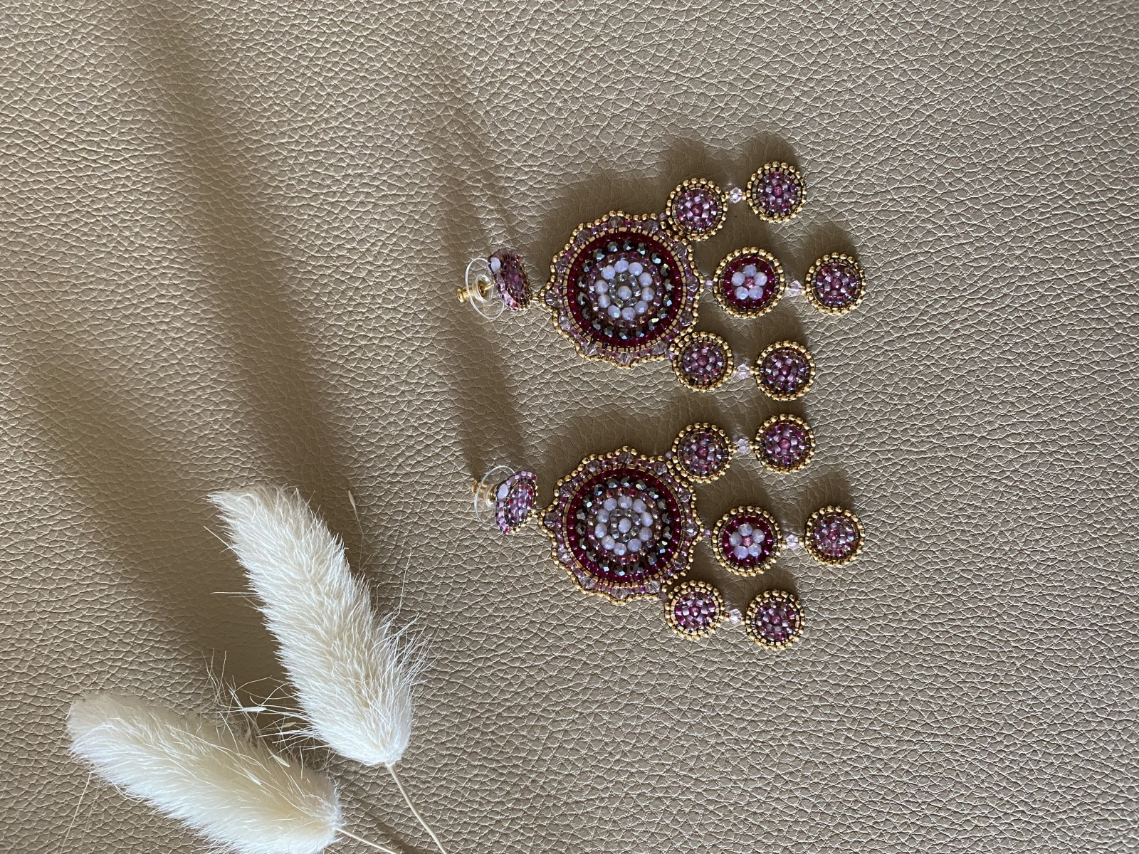 Ich designe und fertige handgenähte Ohrringe. Sie sind sehr leicht und angenehm zu tragen.