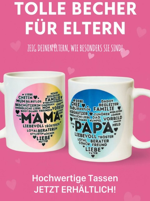 Ob personalisiert mit Namen, besonderen Sprüchen oder liebevollen Motiven – unsere Tassen sind nicht nur praktisch, sondern ein echtes Herzensgeschenk.