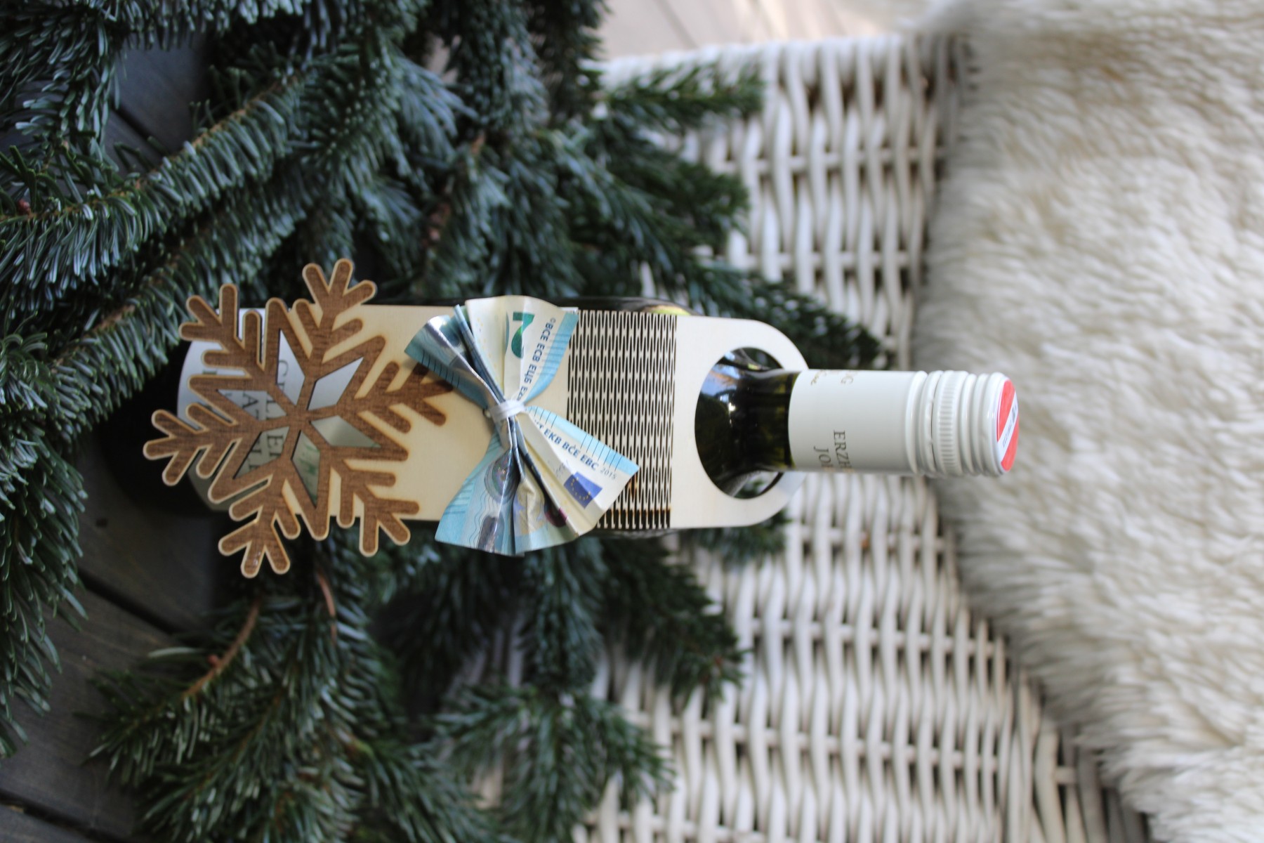 Mein stilvoller Flaschenanhänger - Geldgeschenk für Weihnachten ist die perfekte Ergänzung für Wein-, Sekt- oder Spirituosenflaschen. Mit liebevoll ausgeschnittenem Tannenbaum- oder Schneeflocken Motiv und eleganter Lasergravur wird jede Flasche zu einem besonderen Hingucker.
