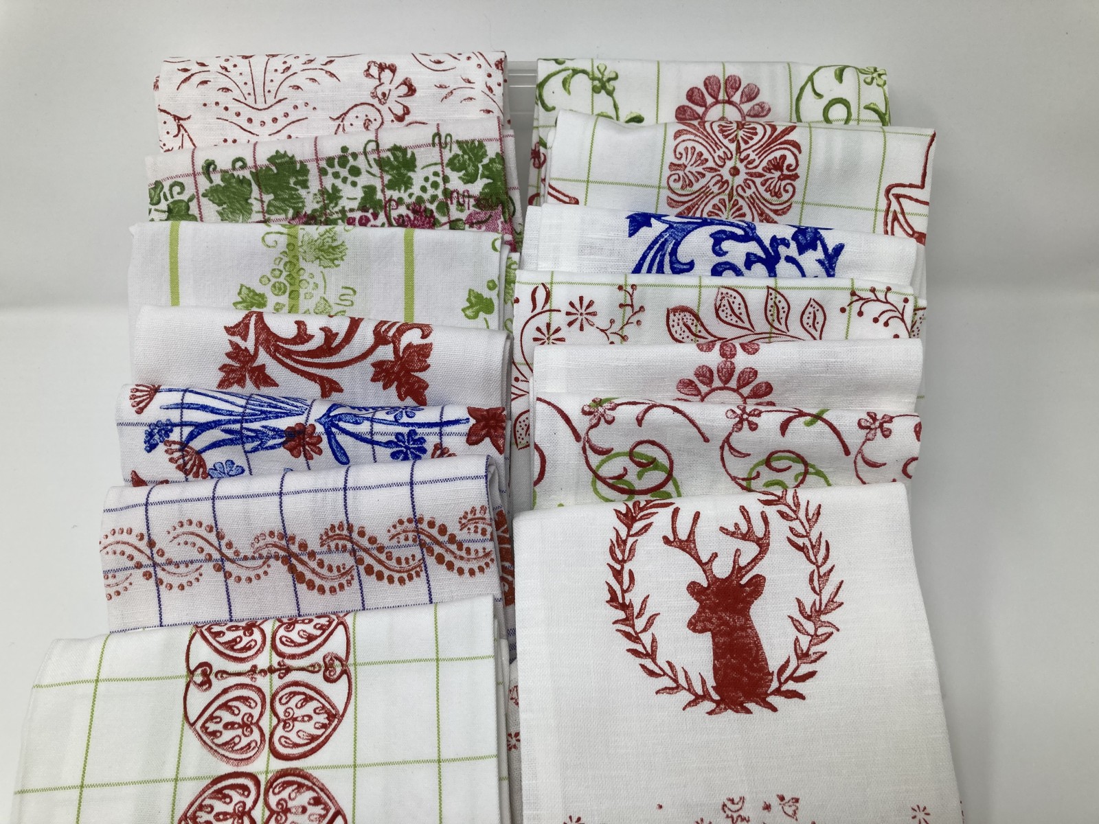 Stoffdruck mit Handdruckmodeln auf Geschirrtüchern aus unterschiedlichen Qualitäten