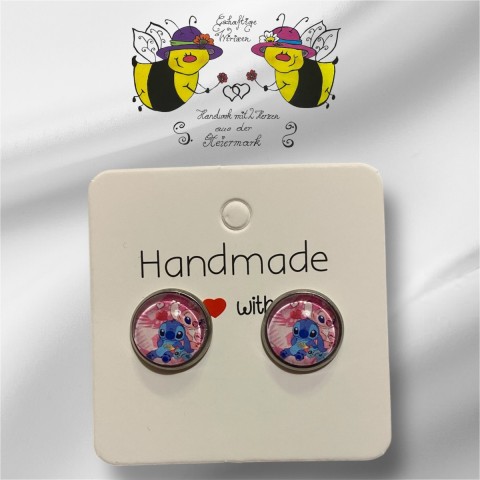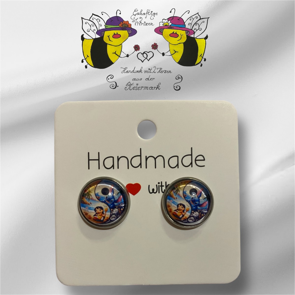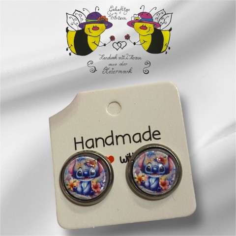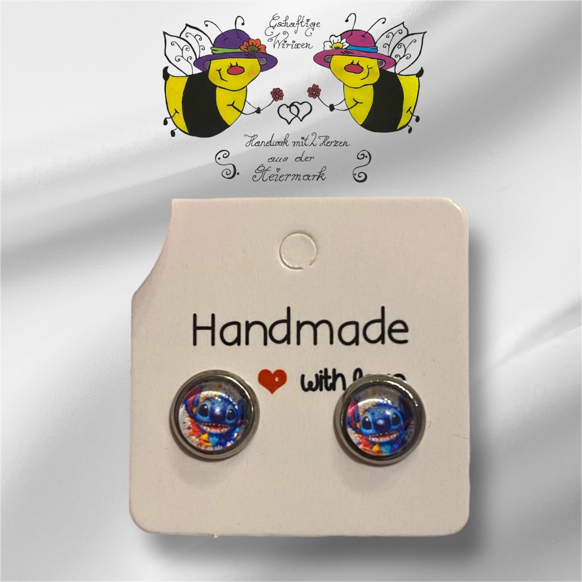 Wunderschöne Glas - Cabochonohrstecker mit unterschiedlichen Disney - Stitch Motiven