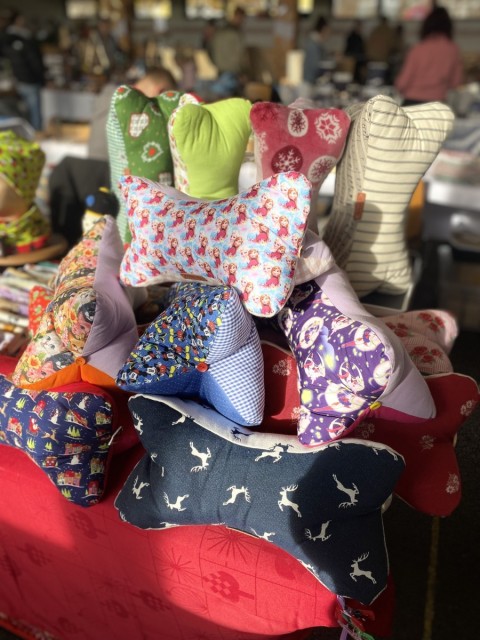 Wunderschöne Jeans-Rucksäcke und Taschen mit unterschiedlichen Designs, Stirnbänder und Beanie-Mützen sowie Kirschkernkissen und Schüttelpenale werden mit großer Liebe und mit flinken Fingern hergestellt.