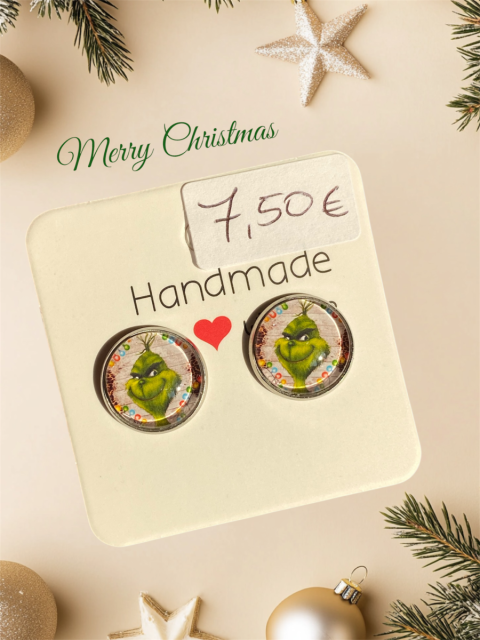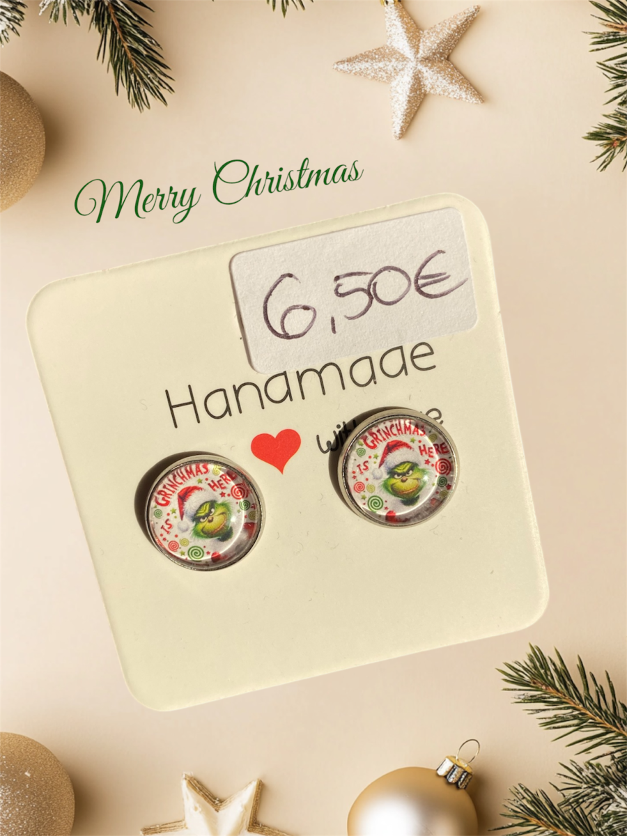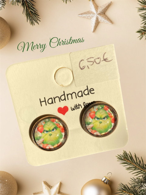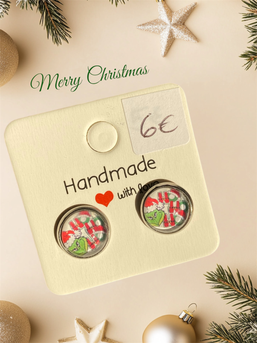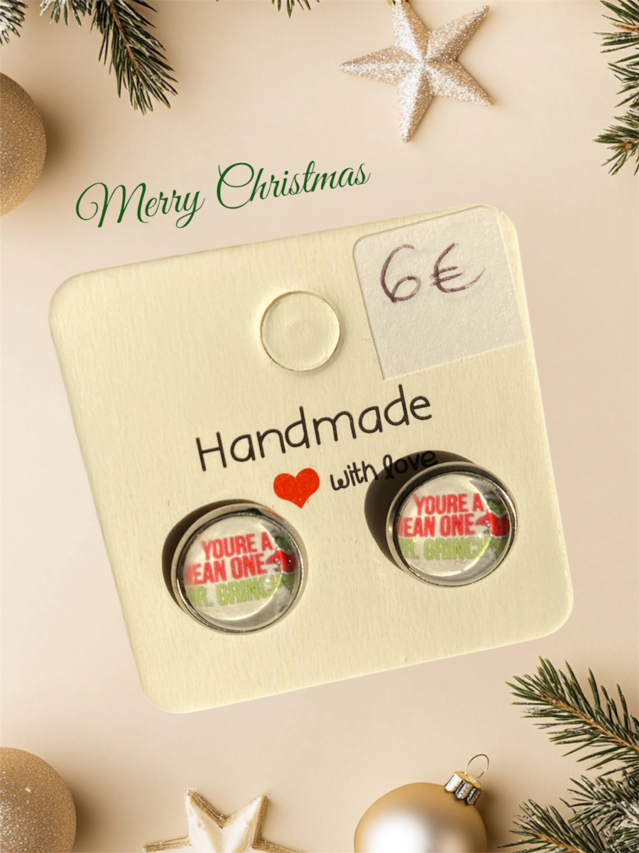 Wunderschöne Glas-Cabochonstecker in unterschiedlichen Weihnachtsmotiven GRINCH