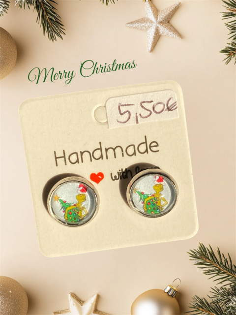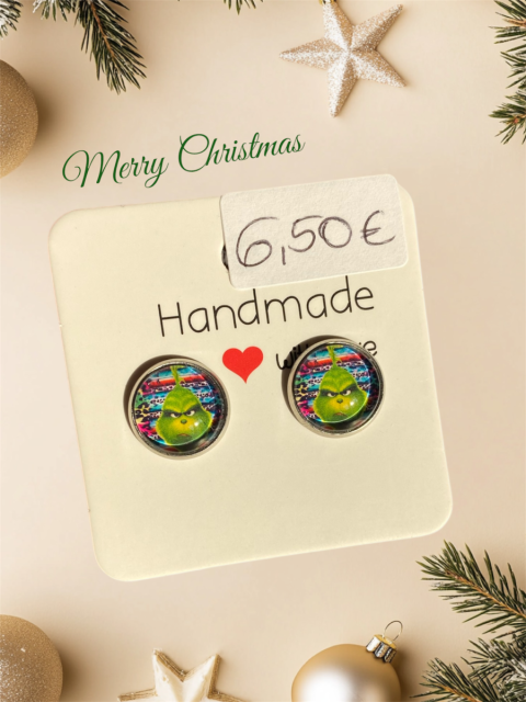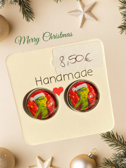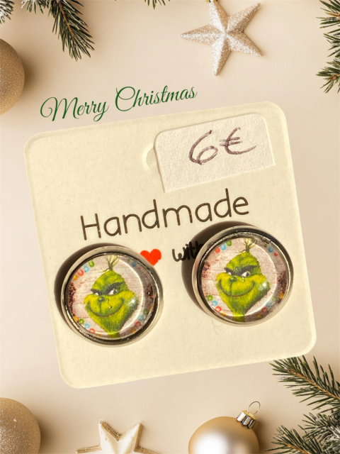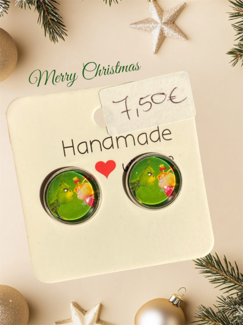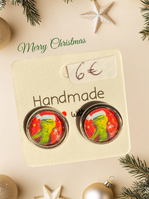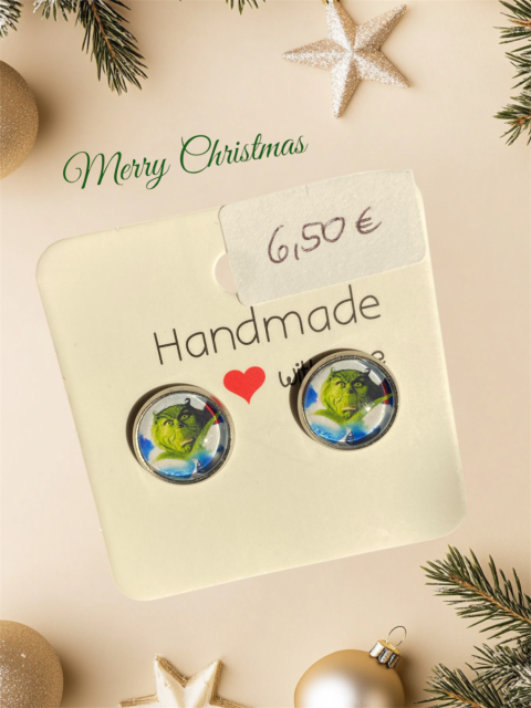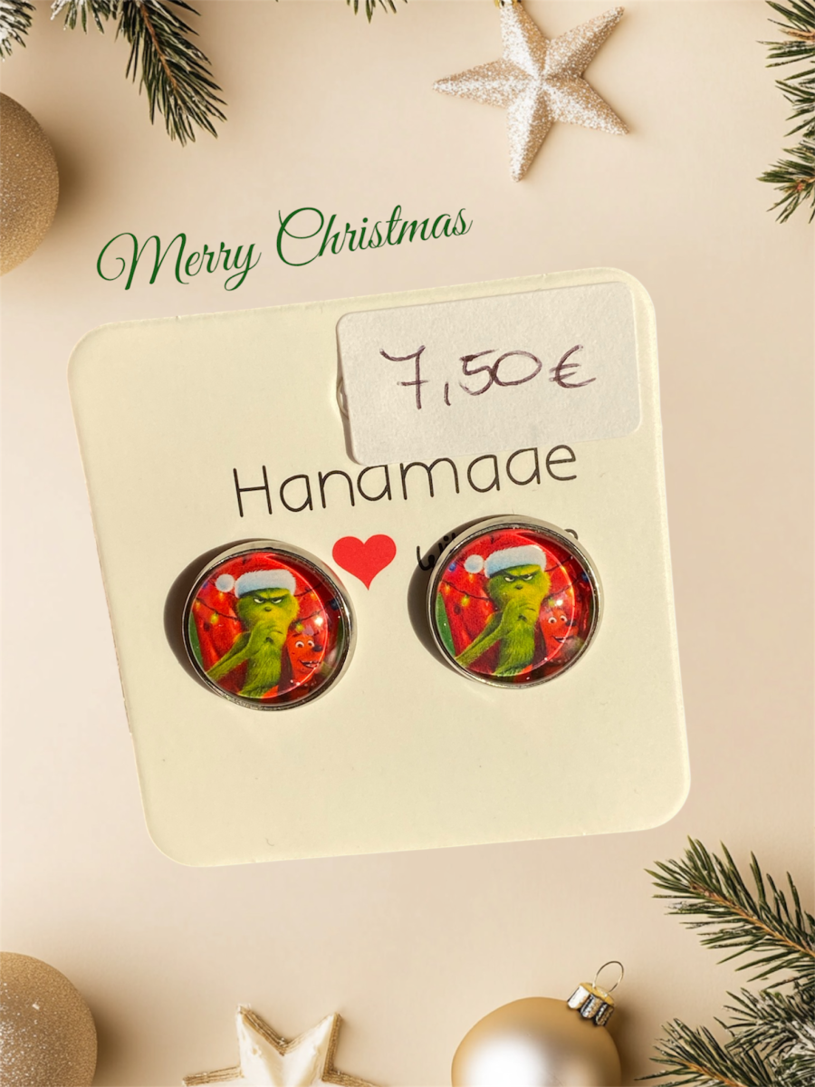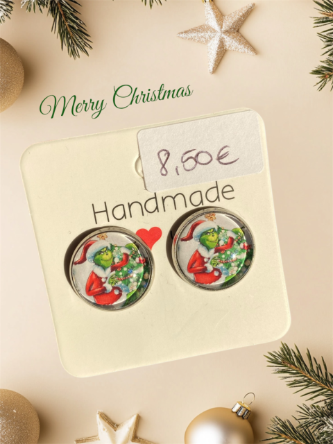 Wunderschöne Glas-Cabochonstecker in unterschiedlichen Weihnachtsmotiven GRINCH