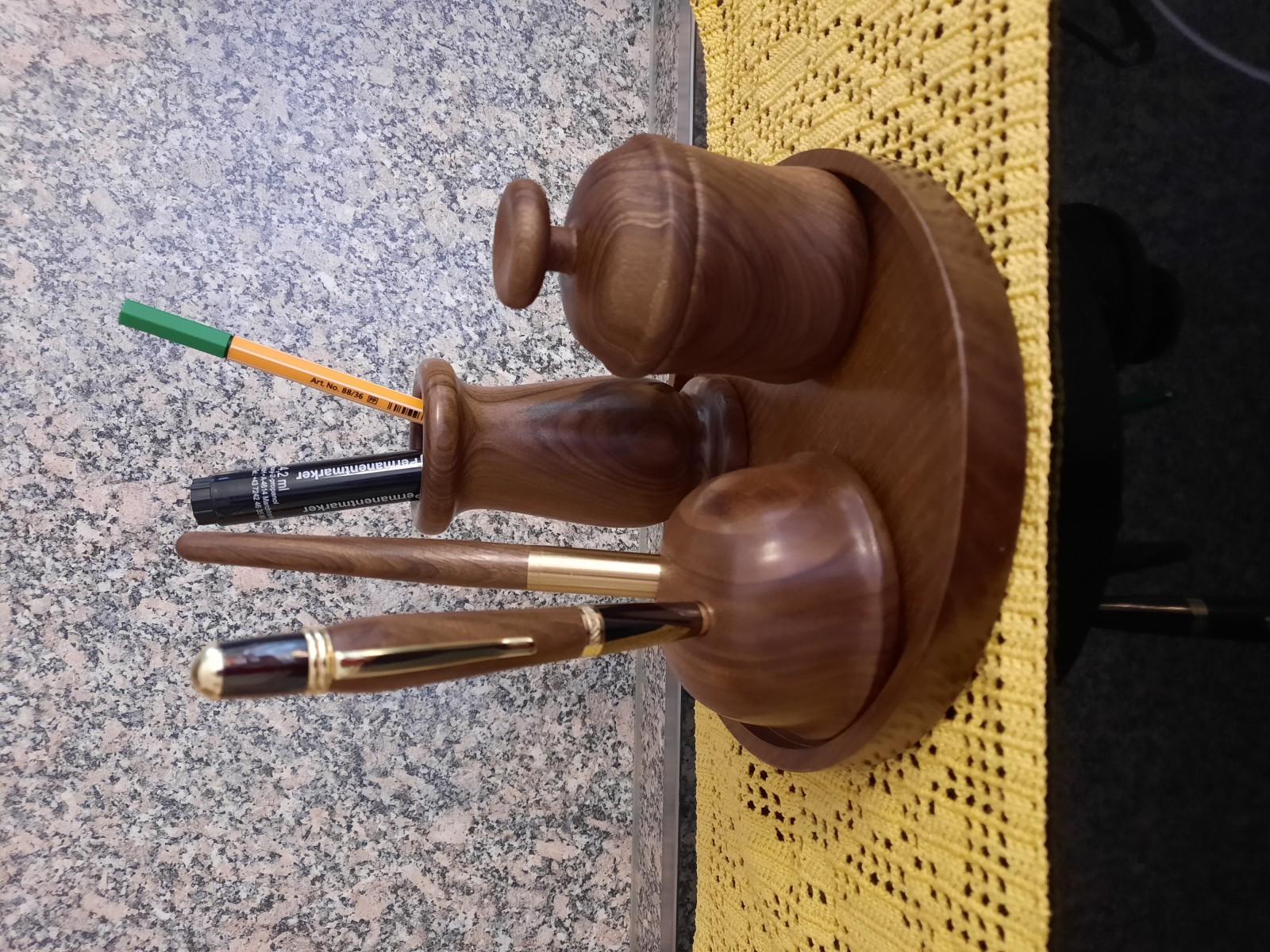 Exklusives handgedrechseltes Schreibtischset aus Nußholz