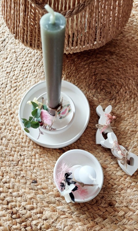 Kerze nur in weiß, Deko in verschiedenen Farben nach Verfügbarkeit möglich.