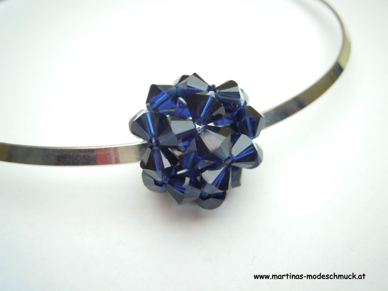 Handgefädelte Swarovski Kugel mit 2,5 cm Durchmesser auf Halsreif mit Schraubverschluss (Aufpreis auf breiten Halsreifen EUR 5,-).
