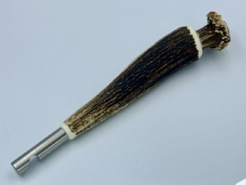Besonderes Accessoires für die Knickertasche Ihrer Lederhose, damit Sie nicht bei einer vollen Bierflasche verdursten müssen. Gefertigt aus Hirschhorn mit Edelstahl und einem Geheimfach. Länge ca. 21,0 cm.