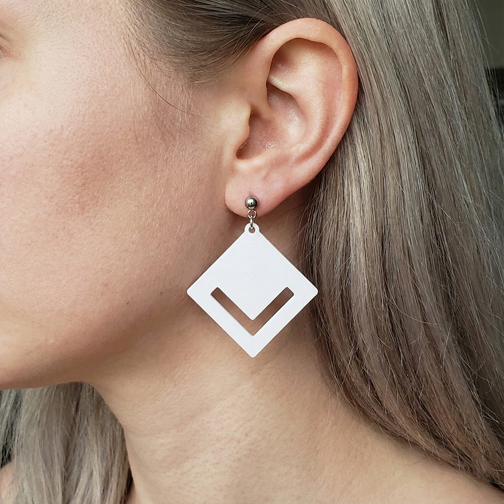 Ultraleicht und komfortabel: Die materialeffiziente Konstruktion im 3D-Druck garantiert, dass dieser Ohrring trotz seiner klaren Form federleicht ist – ideal für ganztägigen Tragekomfort.
