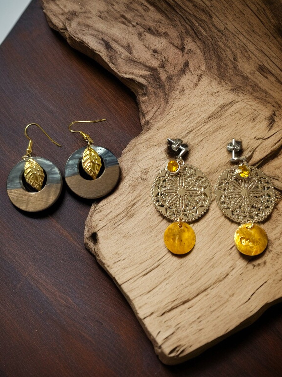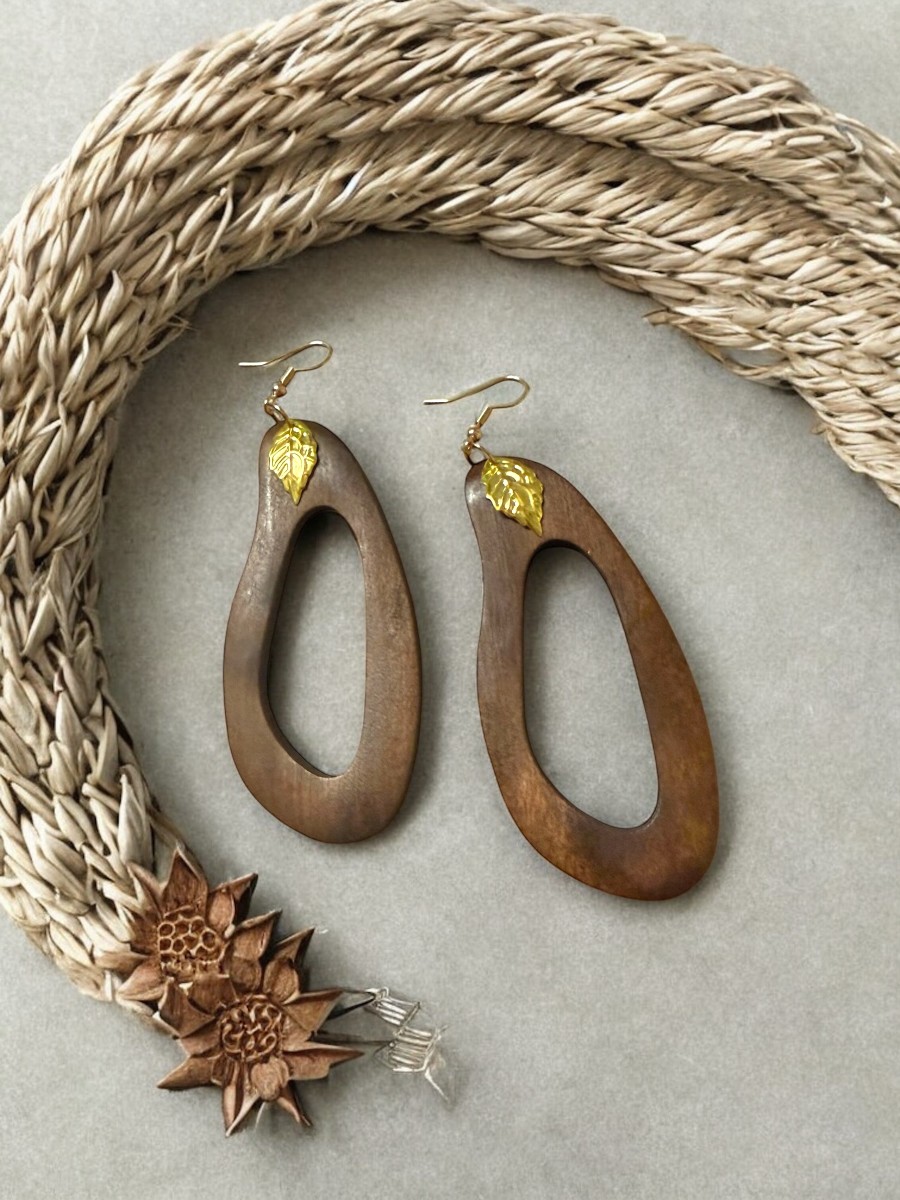 Diese einzigartigen Ohrringe vereinen edles Holz, feine Metallelemente und liebevolle Details zu einem ganz besonderen Schmuckstück.