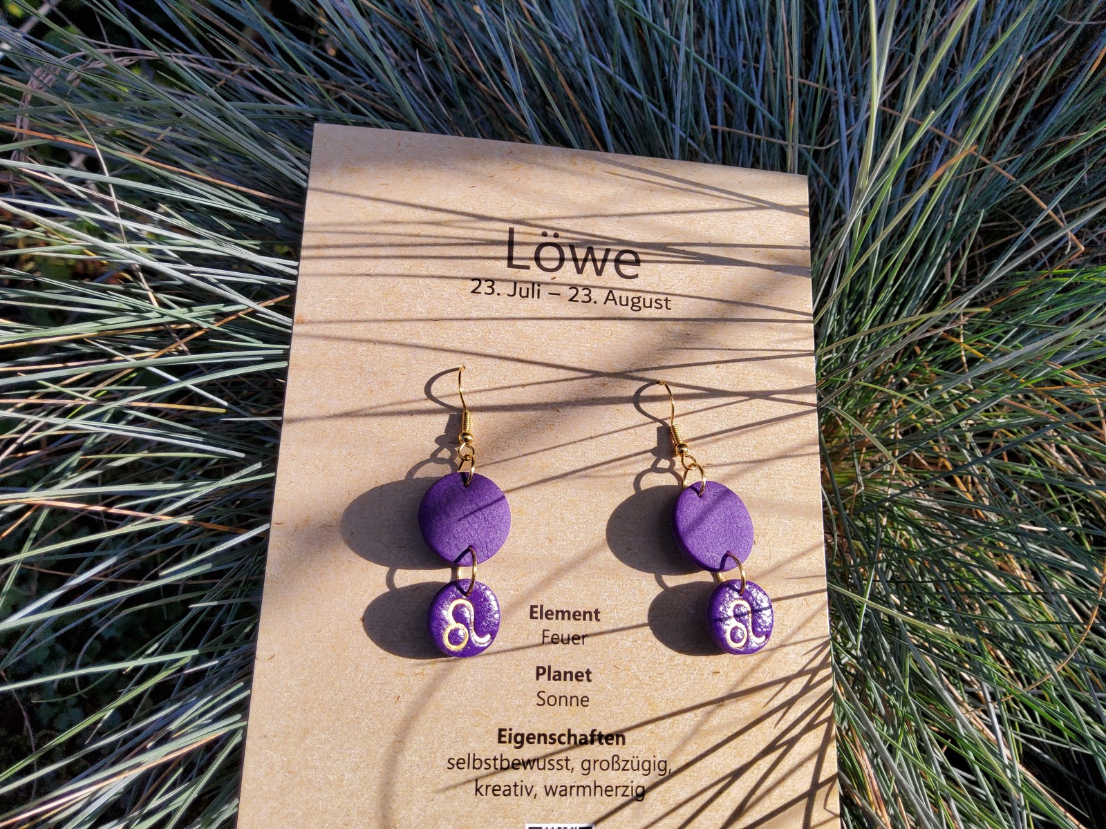 Polymerton Ohrringe, Stecker oder Ohrfeder, auf Geschenkkarte mit Info des jeweiligen Sternzeichens