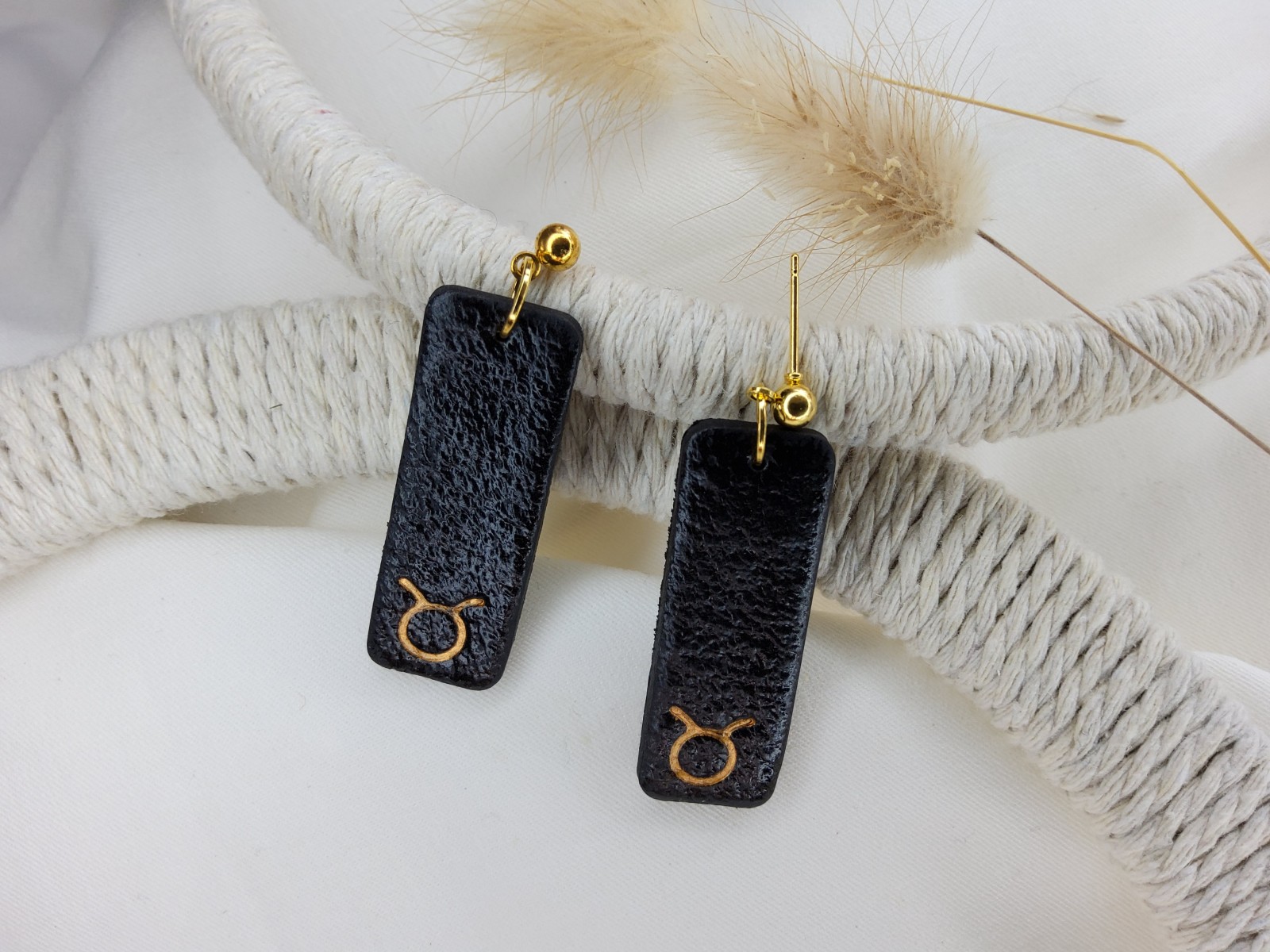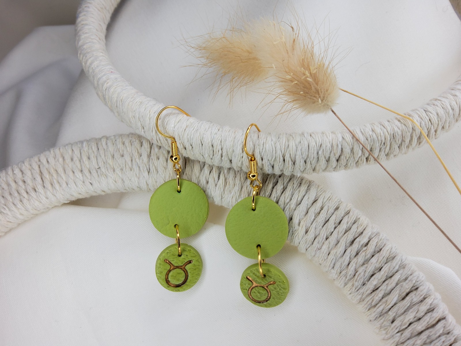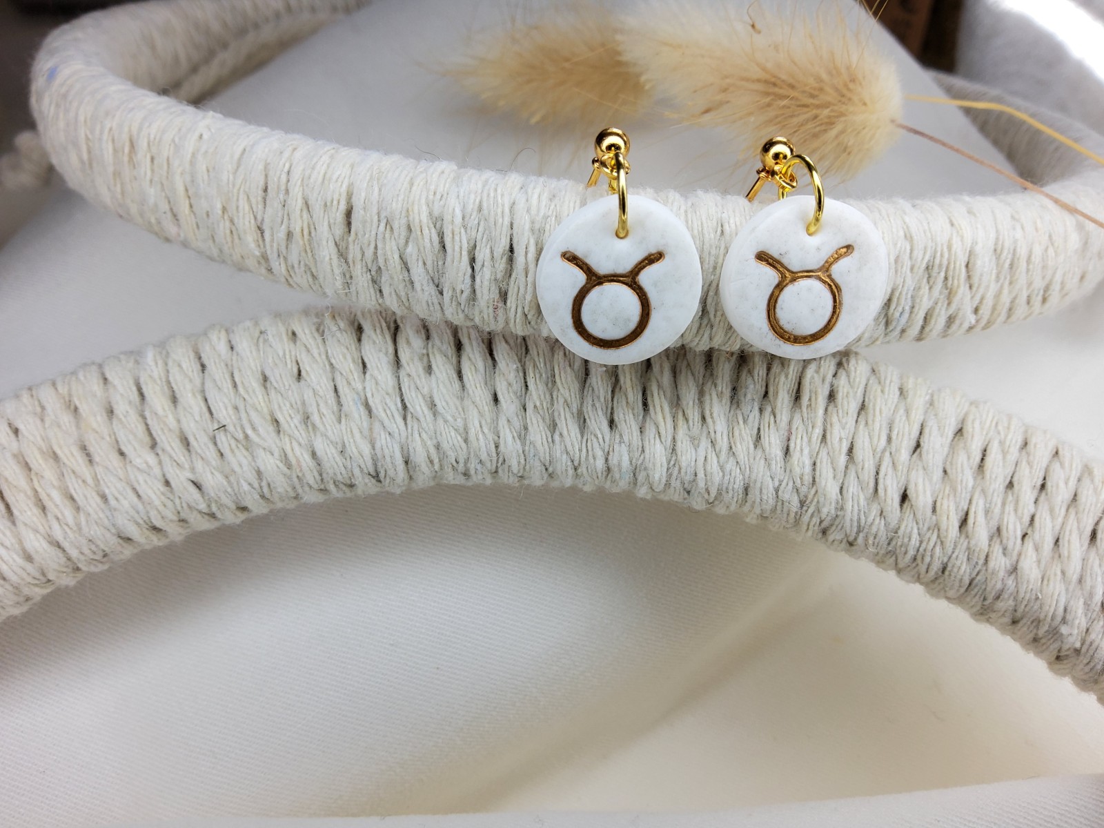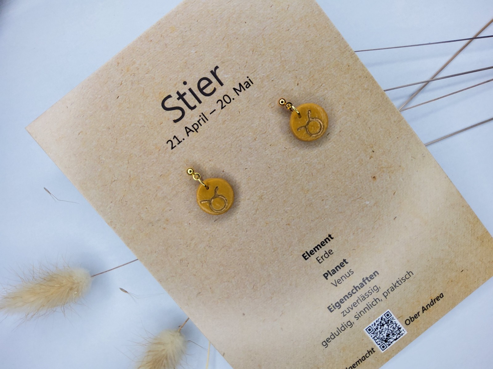 Ohrringe aus Polymerton, Stecker oder Ohrfeder, auf Geschenkkarte mit Info des jeweiligen Sternzeichens