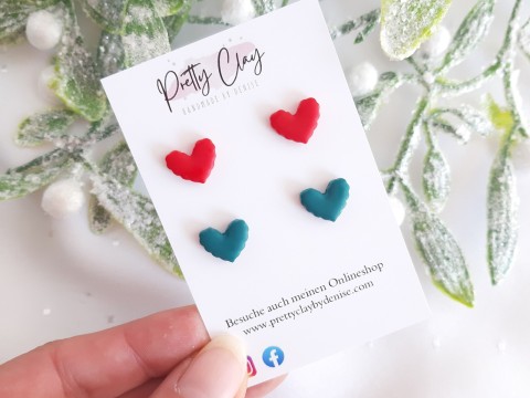 Ohrstecker die traditionelle Weihnachtsfarben haben, aber dennoch zeitlos sind. Hergestellt sind sie aus federleichtem Polymer Clay. Die angebrachten Stecker sind aus hypoallergenem Edelstahl, dass sehr gut verträglich ist.