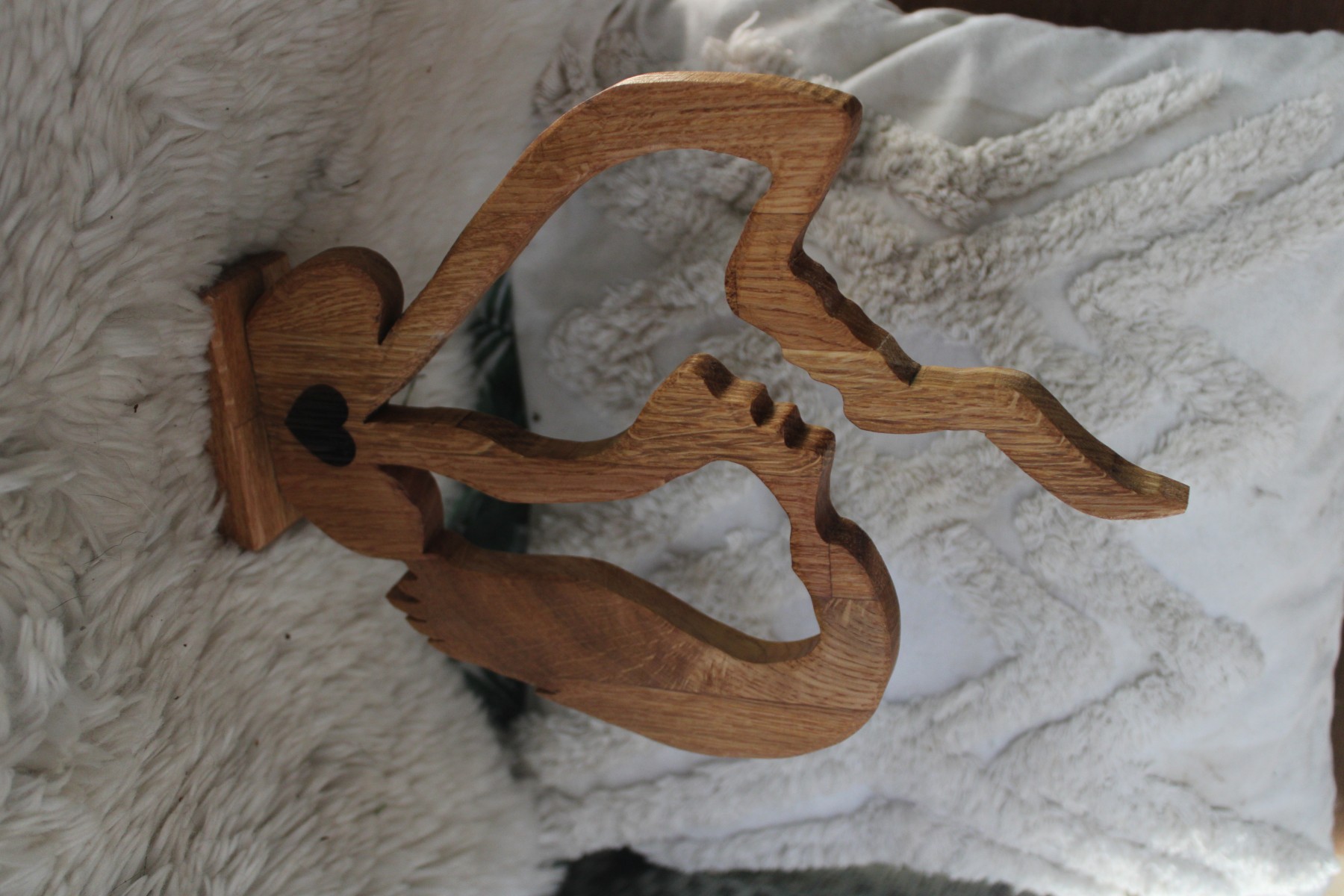 Ob im Wohnzimmer, Schlafzimmer oder Büro – diese moderne Holzfigur passt perfekt in jedes Interieur und zieht durch ihr minimalistisches, elegantes Design alle Blicke auf sich.