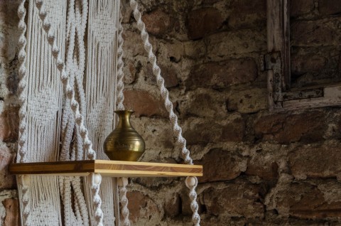 Regal aus Baumwolle geknüpft mit 3-Schicht verleimten Fachböden aus Fichte