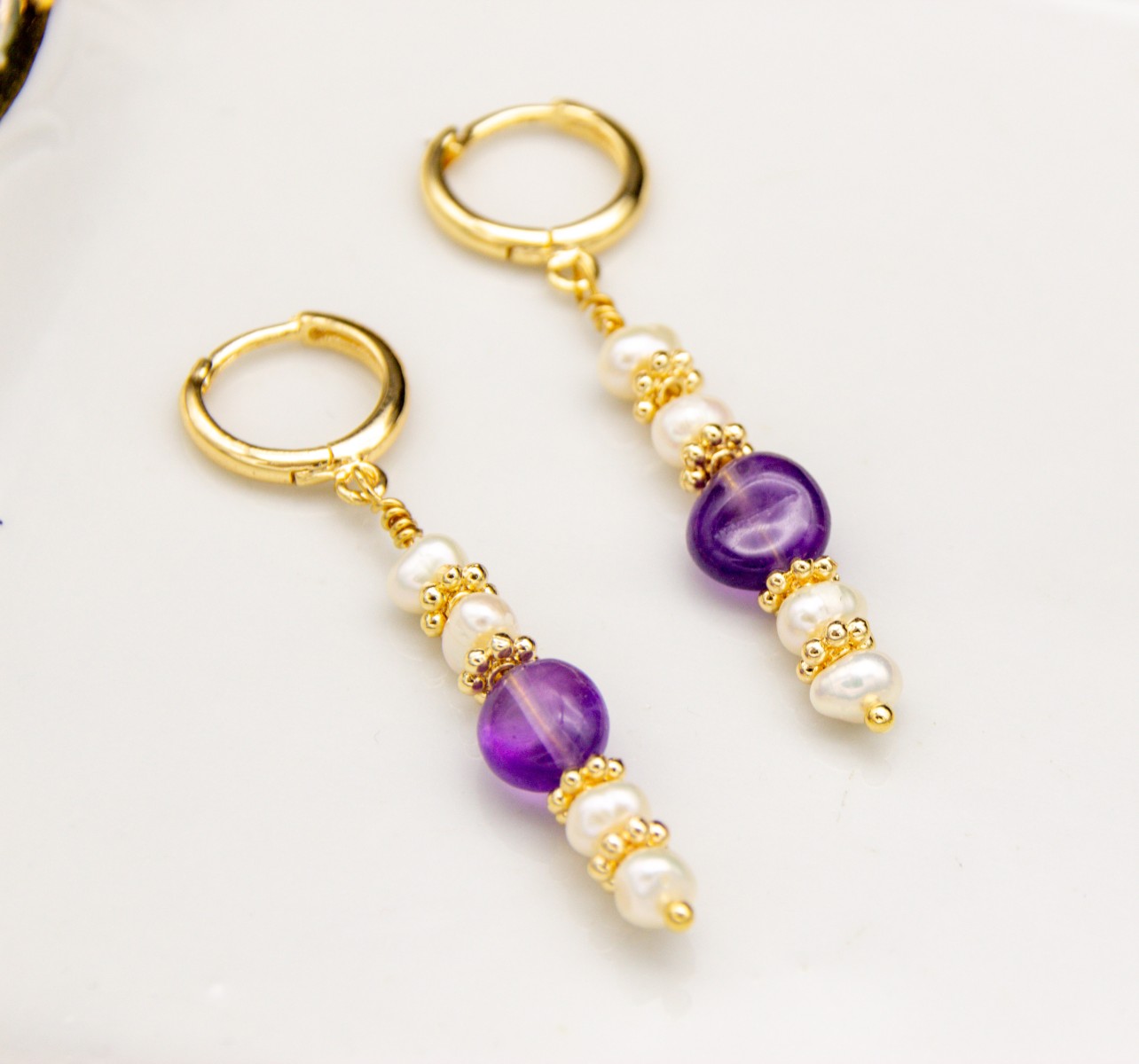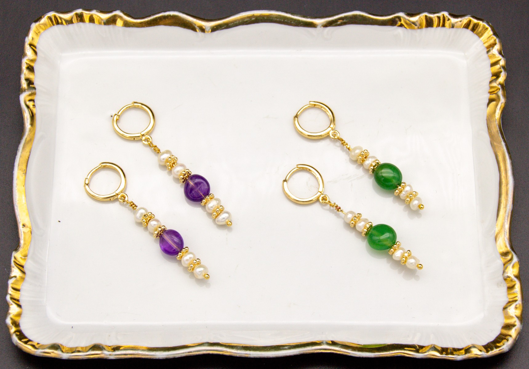 Ich arbeite mit den Materialien Silber, Bronze, Messing, echt vergoldetes Messing, Süßwasserperlen, Edelsteine und Glasperlen. Plastik hat bei mir keinen Platz. Manchmal verarbeite ich auch alte, „vintage“ Objekte. Die allermeisten meiner Stücke sind Unikate oder Kleinserien.