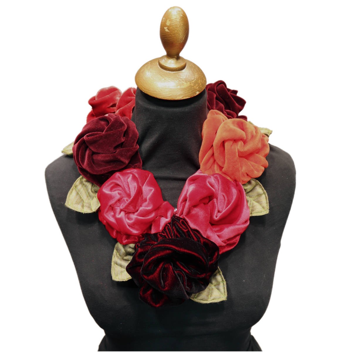 Handgenäht aus Samt, federleicht und kaum zu spüren. Egal ob beim Kundentermin im Büro oder für den eleganten Auftritt am Abend – der Rosenschal passt immer!