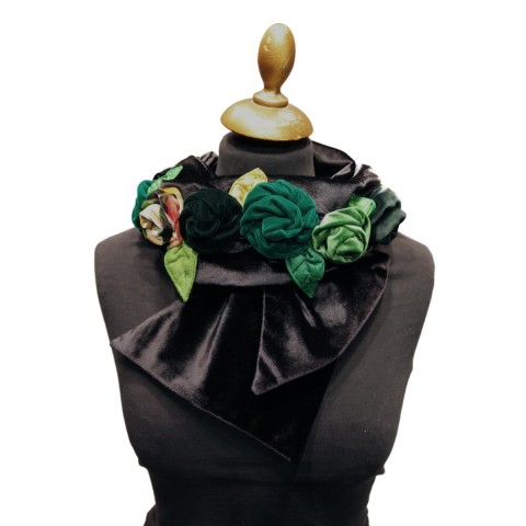 In meiner Arbeit vereine ich verschiedenste Materialien wie Halbedelsteine, Samt, Seide und Stoffe zu außergewöhnlichen und immer einzigartigen Kunstwerken. Neben Schals und Tüchern entstehen so auch Handtaschen, Jacken, Röcke, Broschen und Armbänder.