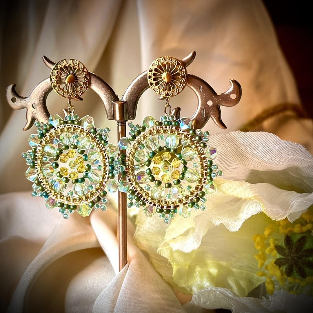 Handgefertigt im Miguel Asis Style, aus unzähligen Swarovski, Miyuki und Glasschliffperlen, federleicht zu tragen.