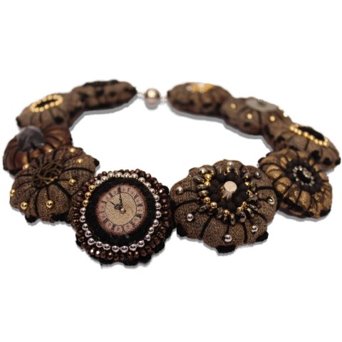 Braun als Hauptfarbe assoziert herbstliche Stimmung, die kleine Uhr soll daran erinnern, dass wir in jedem Moment unsere Zeit geniessen dürfen.