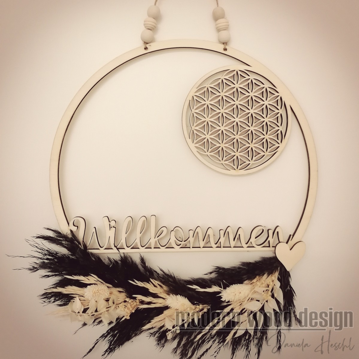 Gefertigt aus Holz Ø 32cm. Trockenblumen-Deko kann variieren.