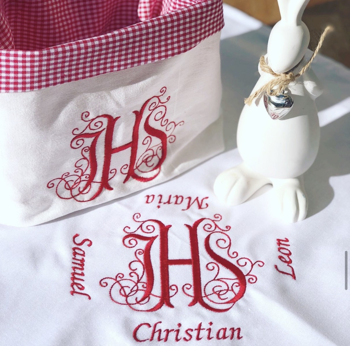 Weihdecke mit den Namen deiner Liebsten bestickt