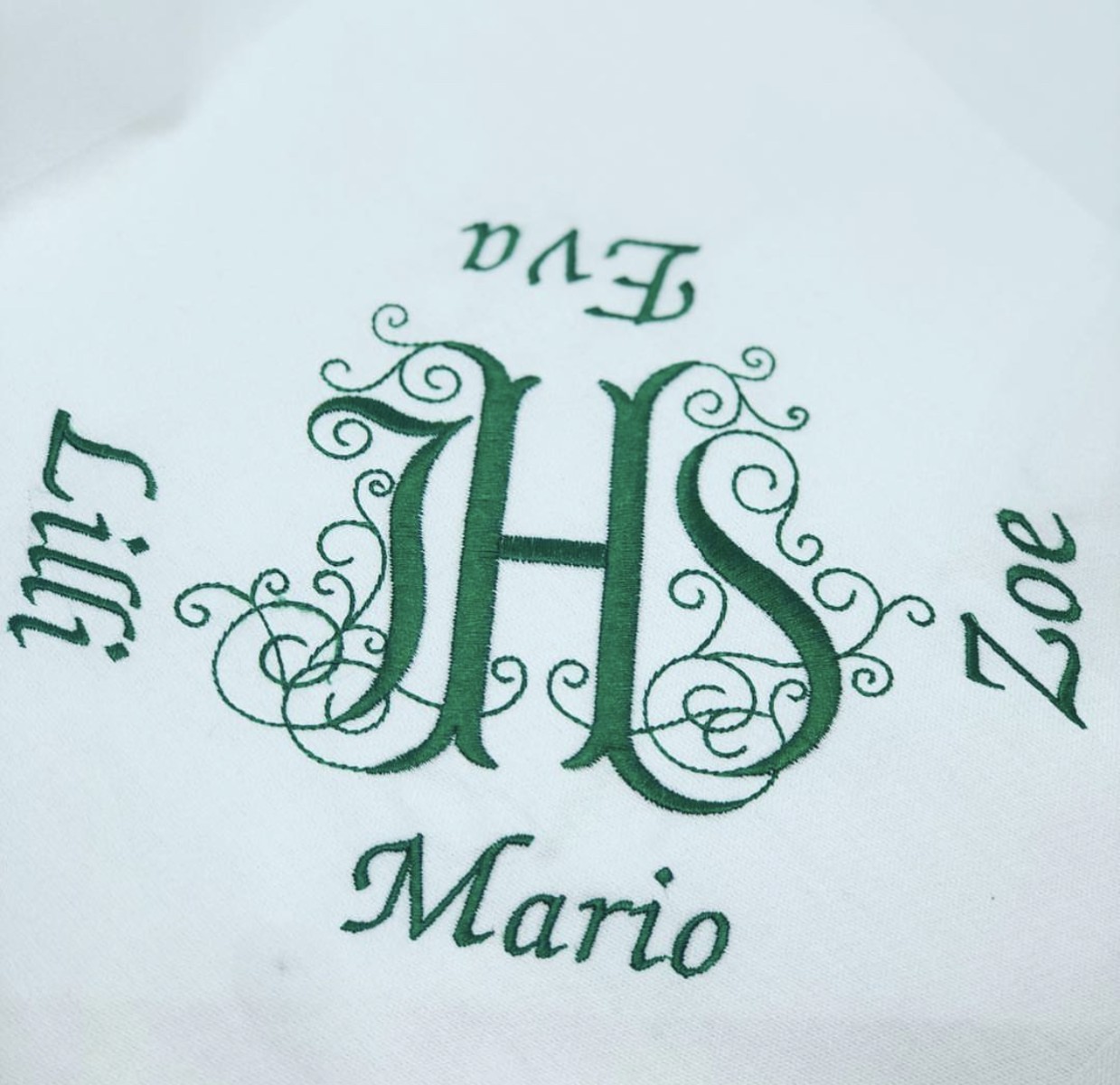 Eine ganz besondere Weihdecke mit den Namen deiner Lieben bestickt. Die Weihdecke kann zum Beispiel auch als Tischmitteldecke zur Dekoration verwendet werden.
