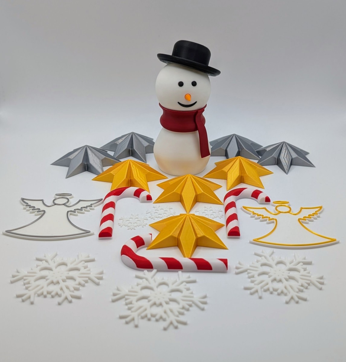 Die Weihnachtskollektion 2025 vereint nachhaltige 3D-gedruckte Deko-Highlights in einem liebevoll zusammengestellten Set: Schneemann Gentlesnow, Zuckerstangen, Schneeflocken, Sternanhänger und Weihnachtsengel – alles aus biologisch abbaubarem PLA. Perfekt abgestimmt, detailreich gefertigt und umweltfreundlich produziert, verwandelt dieses Set dein Zuhause in ein festliches Winterparadies. Ob am Baum, auf dem Tisch oder als Geschenk – die Kombination aus Design, Nachhaltigkeit und Weihnachtszauber macht die Kollektion einzigartig. Feier Weihnachten stilvoll, bewusst und mit Produkten, die Jahr für Jahr Freude schenken. ????❄️