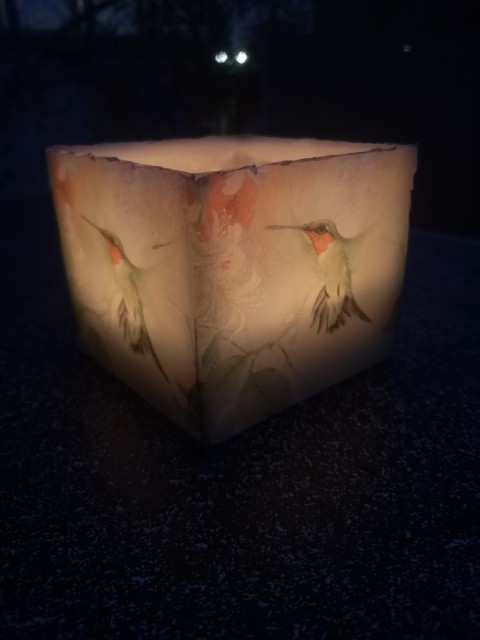 Laternen mit Weihnachtsmotiven, handgegossen, dekoriert und bemalt. Für für echtes Teelicht geeignet.