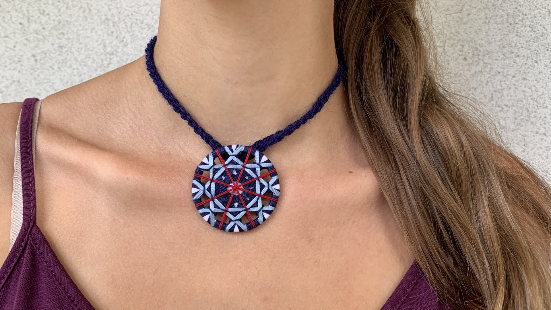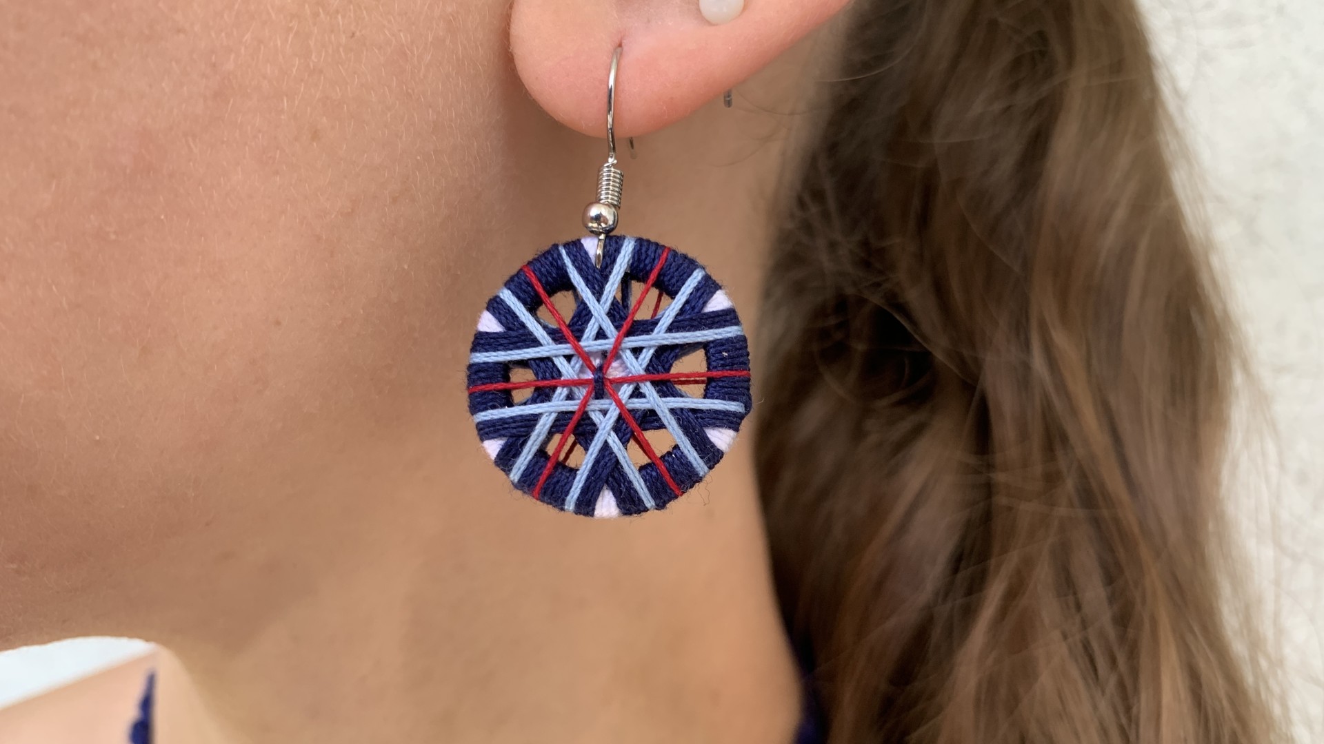 Zwirnknopfset "Winnie" (Weiß, Dunkelblau, Hellblau, Rot) Anhänger mit weichem Häkelband inklusive passende Ohrhänger. Maße Zwirnknopf Kettenanhänger: ca. 55 mm; Maße Zwirnknopf Ohrhänger ca. 25 mm