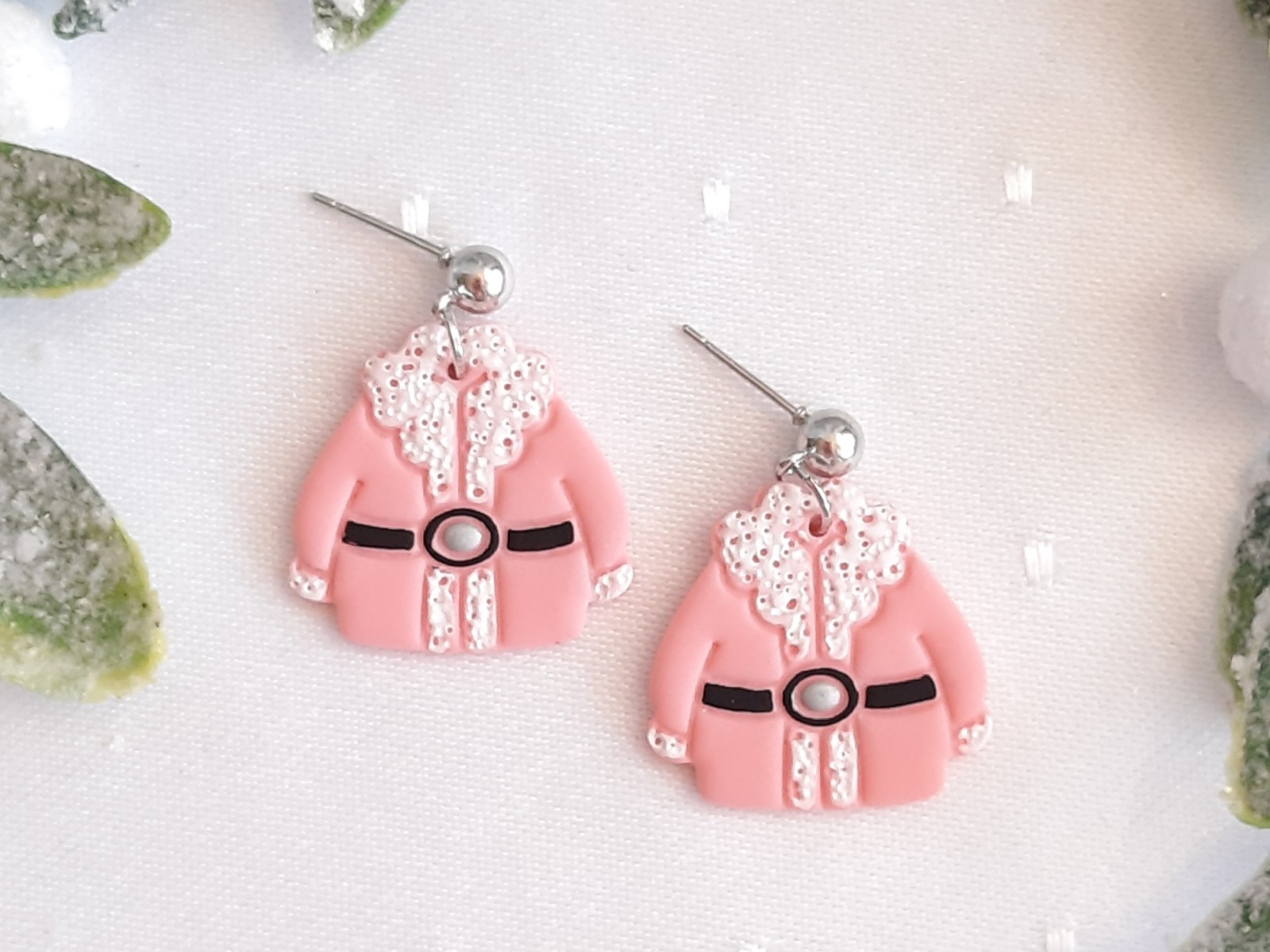 Ein kuscheliges Accessoire für deine Ohren. Handgemacht aus federleichtem Polymer Clay. Details am Kragen und den Ärmeln, sind mit Acryl handbemalt. Die Stecker sind aus hypoallergenem Edelstahl und sehr gut verträglich.